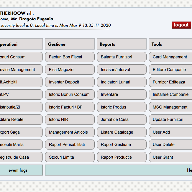 • drepturi configurabile (barman, ospătar, sef sală, etc)